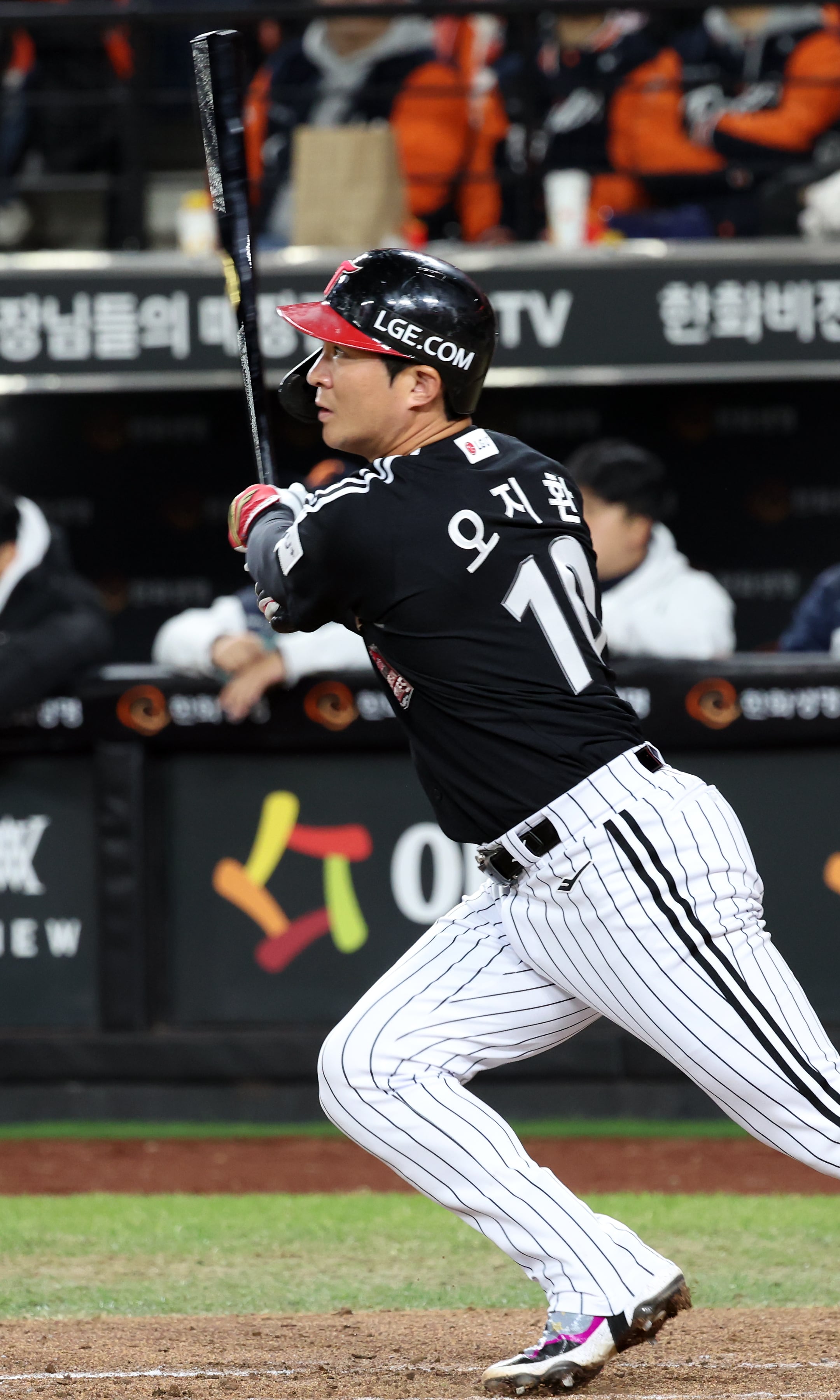 Serangan LG kembali memaksa Hanwha di bab pertama sembilan. Oh Ji-hwan membuka dengan satu lari ke lapangan kanan. Ryu Hyun-jin menangkap Park Dong-won dalam umpan ke tengah lapangan, tetapi Koo Bon-hyuk mengikuti dengan satu lari ke lapangan kanan, mengirimkan pemain ke base pertama dan kedua dengan satu out. Park Hae-min kemudian mengirimkan satu lari pada pitch pertama, membuat semua base penuh. Hong Chang-ki mengirimkan fly out sacrifice ke lapangan kanan, memperpanjang keunggulan LG menjadi 4-1.